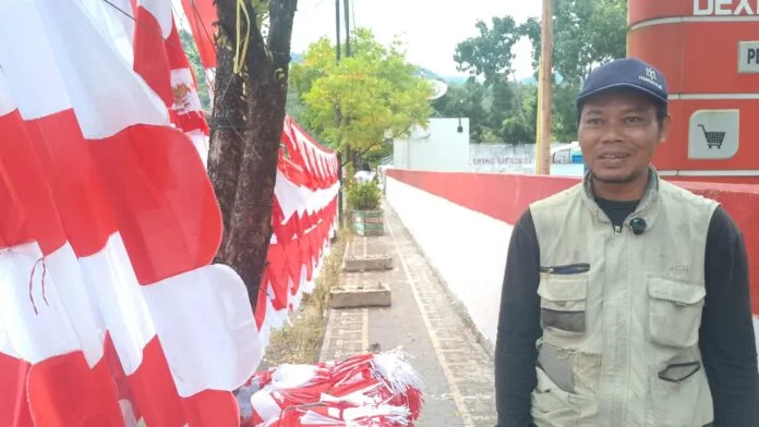 Menurut sang pedagang musiman ini, berjualan atribut merah putih bukan semata soal keuntungan, tetapi juga rasa bangga bisa ikut menyemarakkan hari bersejarah bagi bangsa.