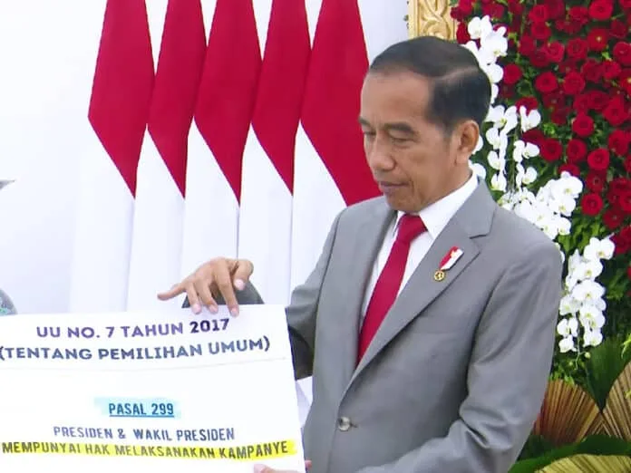 Presiden kemudian membacakan isi aturan tersebut yang jelas menyatakan bahwa presiden dan wakil presiden memiliki hak untuk melaksanakan kampanye. “Jelas,” tegas Jokowi, menegaskan bahwa pernyataannya didasarkan pada ketentuan yang tercantum dalam hukum yang berlaku.